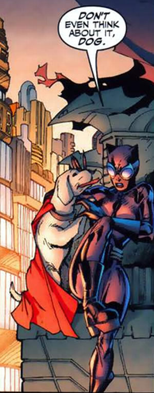 As if the Superman-Batman fight isn't enough we also get Krypto the Super Dog - last time I saw him was in the pages of Kingdom Come. I particularly love the panel when Krypto is trying to lick Catwoman.