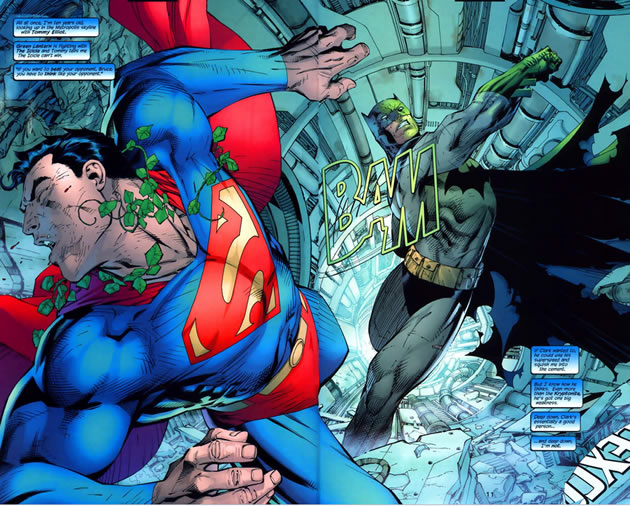 Why is it so special when Batman punches Superman? It felt special in The Dark Knight Returns and it feels special here. Lovers of the Man of Steel get a treat as Jim Lee draws him unleashing his heat vision, going through just anything, and just flying around.