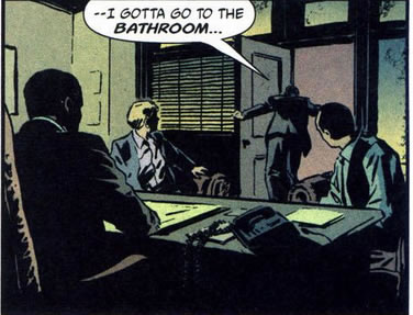 Harvey Bullock's face. Issue 20 page 7 last panel. Michael Lark nails it again. I'm ready to give this guy his own comicbook - Harvey not Michael. Michael already has his own comicbook.