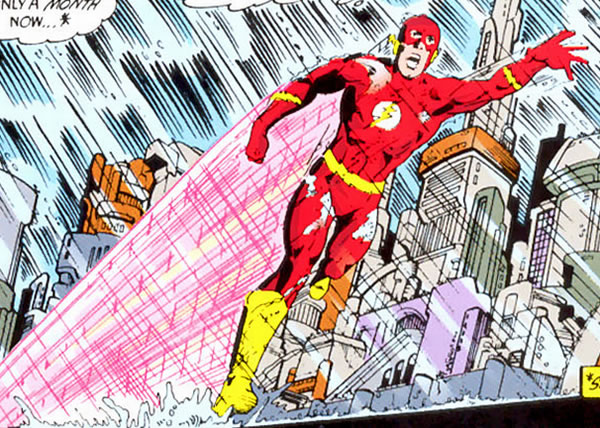 See how the Flash's speed is rendered below? They don't do it this way anymore. Current rendition shows the lightning of the speed force which, I must admit, is a superior rendition. But this rendition of speed brings back memories. This is the kind of Flash drawings I grew up with.