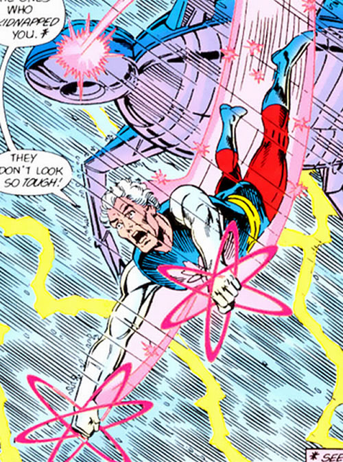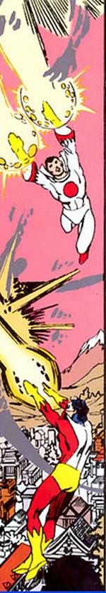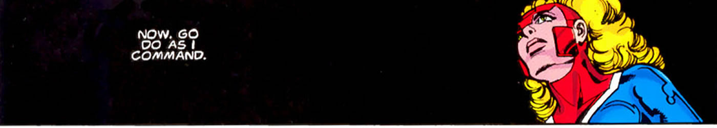 The two Supermen(with Lois). Note how Perez makes them distinct visually. ![]() babeshot : Phantom Lady ![]() Here is the anti-Monitor. As villains go, he looks like a poor man's Apocalypse. Considering the buildup of not showing him during the past five issues, this is pretty underwhelming. ![]() Is it me? Or are the small panel art getting much better without sacrificing detail. Look at this! ![]() Brainiac's ship also looks much better now. Perez is hitting his stride. ![]() Here are the heroes DC inherited by purchasing Charlston Comics: Captain Atom ![]() DC had plans of making Captain Atom a major villain in one of it's events but readers had become quite fond of the Captain, who would eventually become a member of the popular Justice League International, and Hawk was used to replace him as a bad guy. Blue Beetle and the Question ![]() Like the Beetle, the Question would also be replaced. He would die of cancer and be replaced by former Gotham City Police Department detective Renee Montoya. Peacemaker and Nightshade ![]() Judomaster ![]() There was a time when DC (then National Periodicals) sued Fawcett, the owners of Shazam, because they felt the Big Red Cheese was a copyright violation of Superman. Now Captain Marvel is part of the DCU. ![]() This is a sample of Kole's power.