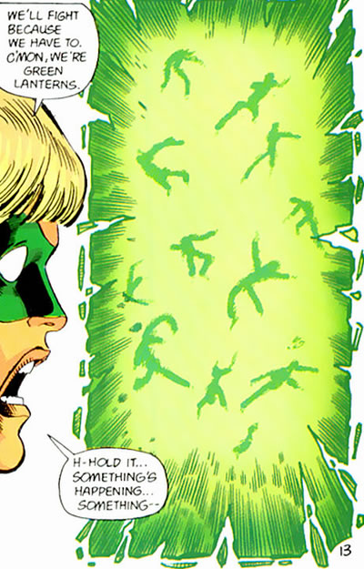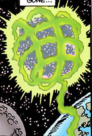 The mystic power of the heroes creates a powerful energy net, obviously based on the Green Lantern energy, that takes care of the shadow creatures.