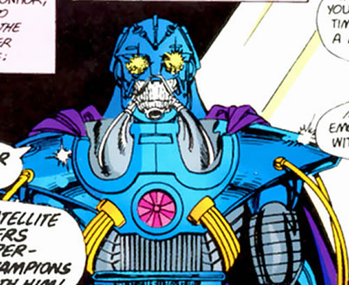 Changeling ![]() Kole ![]() Wonder Girl ![]() Jericho. ![]() The only ones missing are Kid Flash, Raven and Cyborg. The New Teen Titans under Wolfman and Perez are some of the best examples of comics. Arguably the best New Teen Titans story is 'The Judas Contract'. At the time, Brainiac and Luthor went through some kind of revamp before the Crisis. Check out Brainiac and his ship. ![]() There used to be an old war comic featuring a haunted Sherman tank. Here's tank commander Jeb and the ghost of General Stuart (inside the black cloud). Note the Confederate flag. ![]() Blue Beetle is the Spider-Man of DC (Steve Ditko created the Beetle and co-created Spider-Man). He was given his own comicbook right after the Crisis event. Unfortunately, years later, he got murdered and a new Blue Beetle took his place right before the Infinite Crisis event.