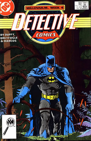 I'm not blaming Jo Duffy for this atrocious issue for a number of reasons. First, I've seen her work in Defenders - she's a strong writer. Second, this is a Millenium crossover, so the storyline was editorially dictated to an extent; the parts that where not Millenium subplots were not so bad. The Manhunters as depicted in Millenium are certainly a pet peeve of mine. They are poorly designed tin soldiers and look particularly bad when depicted in bunches. The only thing that kept this from being awful was Breyfogle's art. If you're in the mood for a bad comic. You've found it.