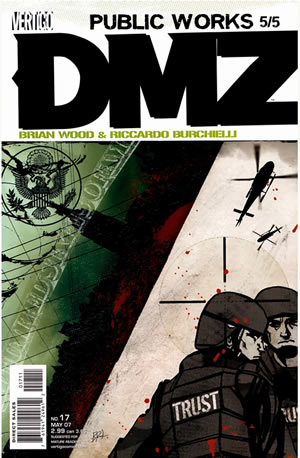 Before we conclude the Public Works storyline let me just say that Brian Wood is now gold to me. I read his excellent Supermarket series and now the Public Works story arc in DMZ and Mr. Wood has shown a consistent ability to create stories that pull me in and never let go. This is a writer I can count on. If I see his name in a comic, it's automatically going to mean a good read to me.