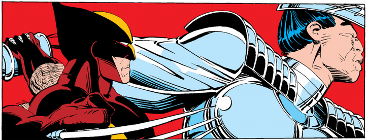 Wolverine gets a clear shot to the Silver Samurai's jugular.