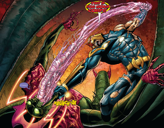 This cataclysmic explosion will forever be known as the Galactus Effect and it lays waste to the Annihilation Wave. Just like that the war has turned. But what of Annihilus? It is only fitting that the last of the Nova Corpsmen gets to - how do I put it? "Step on the cockroach".