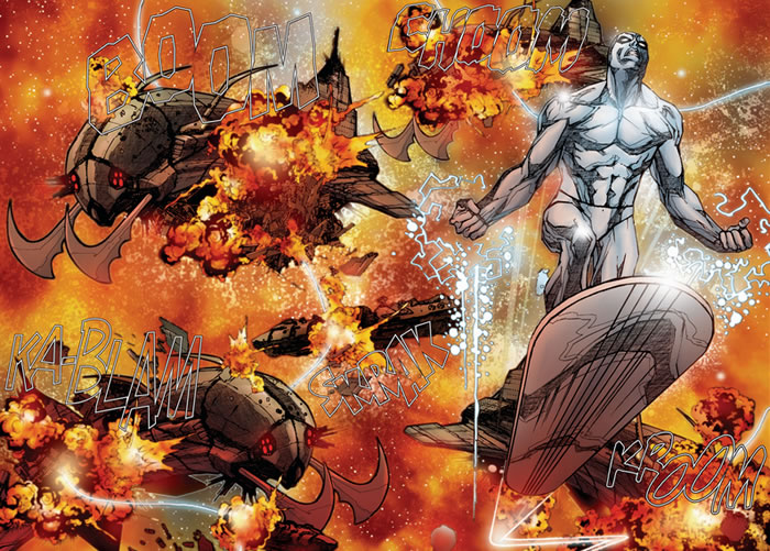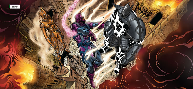 Jaw-dropping isn't it? Over Galactus are Aegis and Tenebrous. It was Galactus and the Surfer against these two. I've never seen the Surfer so beaten up.