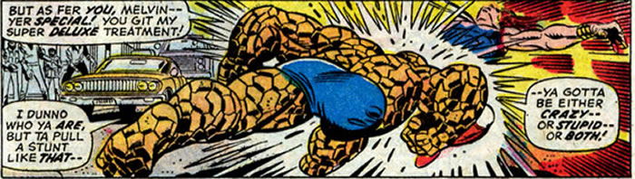 The Thing definitely has the upper hand in this match. Just look at this punch!