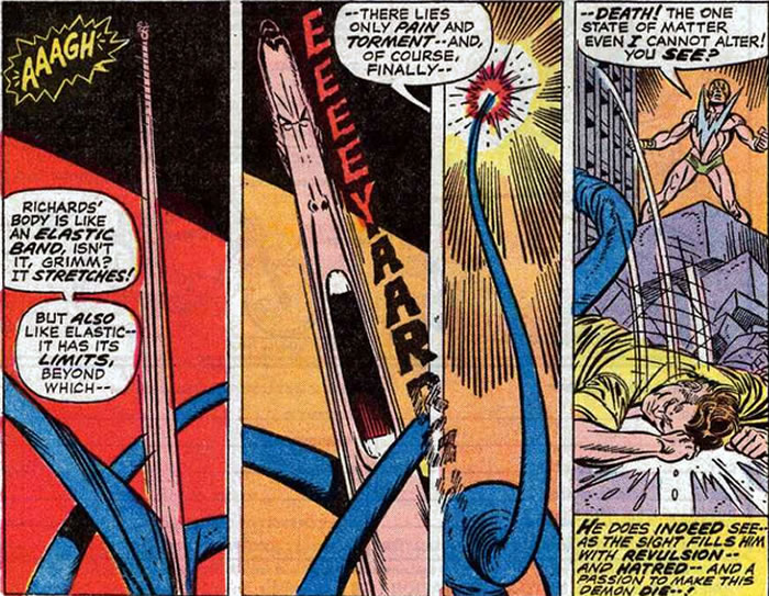 So how does Daredevil become involved with all this? Well, Reed's Wundarr experiment has an explosive conclusion and guess who's swinging by right in time to dodge some debris?