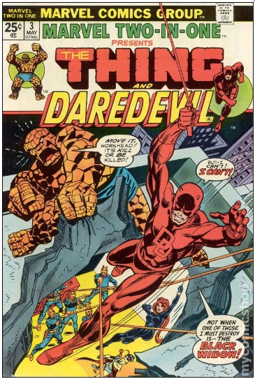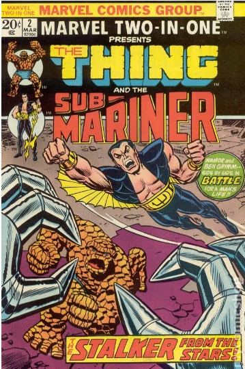 It is the beginning of Marvel Two-In-One. This series will forever have a place among my favorite comics because first of all, it features the Thing. Before Wolverine and Deadpool became breakout stars at Marvel, the Thing was the breakout star - this was around the late seventies and early eighties. The excellence of Marvel Two-In-One was a big part of the Thing's popularity. Another reason I like this series so much is because it comprises a tour of the Marvel Universe. Since the Thing is partnered with a different Marvel character each issue, we get to see bits and pieces of Marvel lore. History that is still relevant for, and still inspires, the Marvel comics we read today. So buckle up and let's look at the first three issues of Marvel Two-In-One.