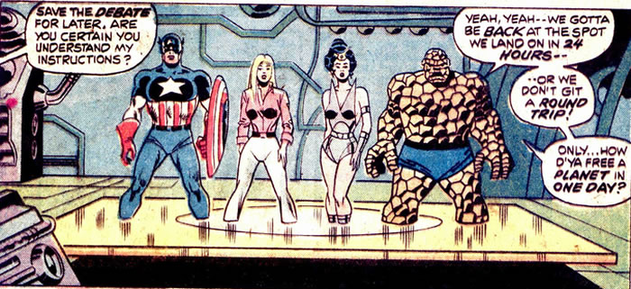 In a very satisfying turn, Captain America suggests that Richards send him and anybody who wants to go to the future so they can help fight the Badoon. And just like that, we have our expeditionary force.