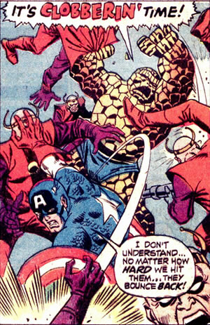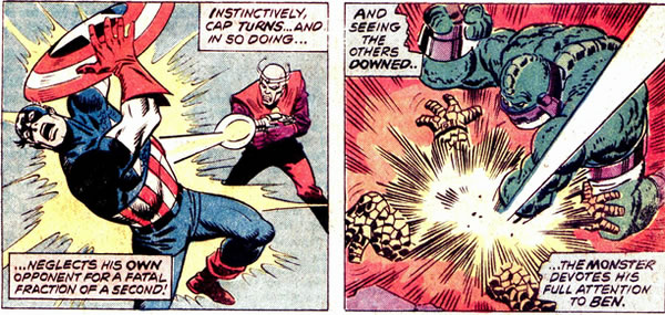I think it's very refreshing that the appearance of Captain America doesn't result in a Thing/Captain America slugfest