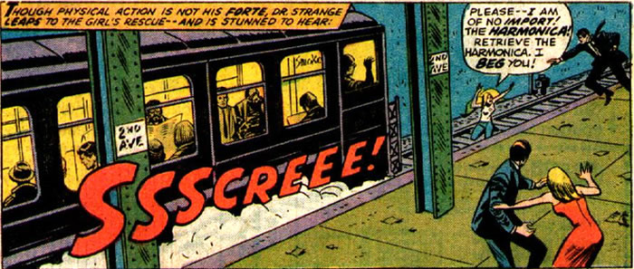 A truly uncommon subway incident indeed as everyone goes their way. Doctor Strange is left with the harmonica the girl was using.