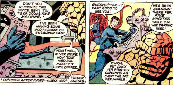 Right before everybody sits down for a nice conversation in the living room Reed was tinkering with one of the two most famous machines in the Marvel universe.