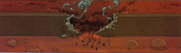 It is a Xorn with wings. According to Gullivar the Molluscs seem to have performed 'flesh mechanics' on the poor creature. It now looks like our popular conception of an angel doesn't it? Look at the other Xorns staring at it, what could they be thinking at such a thing being done to their fellow? This panel really welcomes a lot of scrutiny Carter (John is never referred to as Carter, by the way), and Gullivar, discover items related to Earth among the effects of the Molluscs. Shortly after that, they see 'rockets' blasting off from Mars and both gentlemen realize that the Molluscs are on their way to Earth. Take a wild guess who the welcoming committee is going to be? The adventure is on! The Mollusc ships that left Mars were very specific in their target destination. They did not simply want to arrive on Earth; every single one landed in England - Gullivar's and John Carter's country. The first ship that landed produced a crater and has become a sensation. By the time the League gets to it, people are doing this . . .