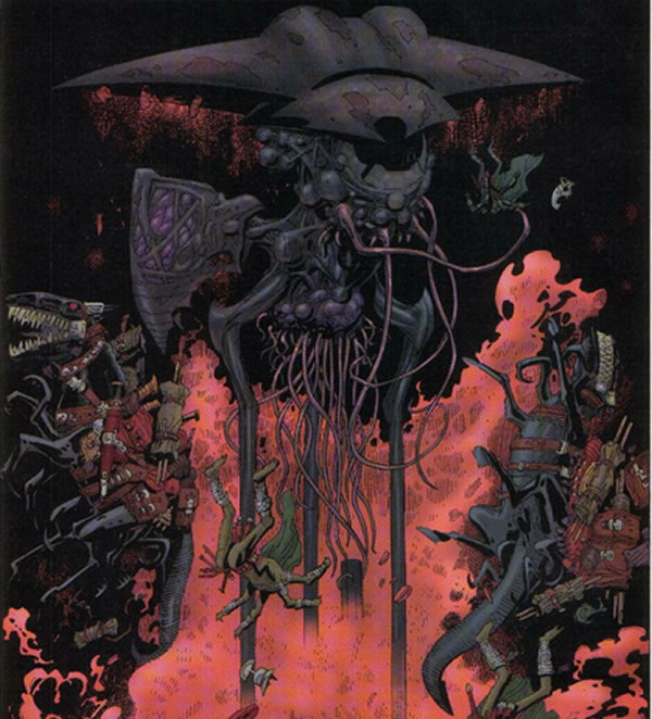 This image is only enriched by Gullivar's statement that he's never seen the Xorns before. Evidently a mysterious race, and powerful - they manage to destroy the tripods Here are the Hithers. They remind me of the armies of the Ottoman Empire.