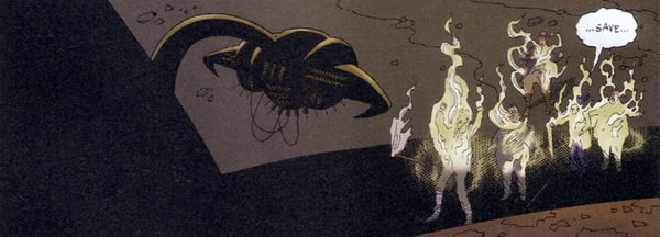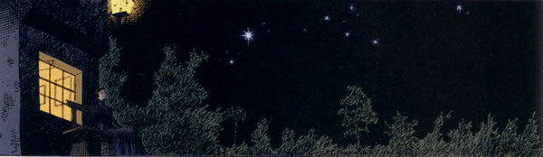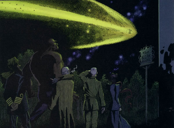This is a great panel showing the arrival of more craft from space. I just love the depiction of the night sky.