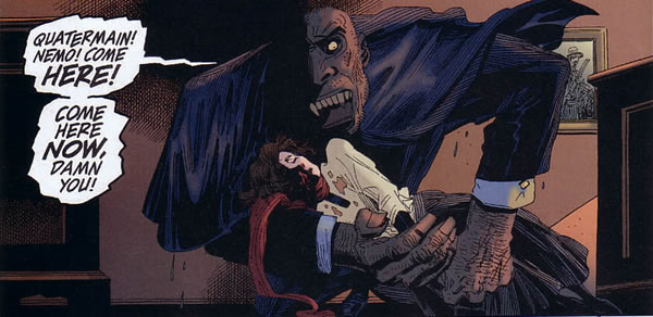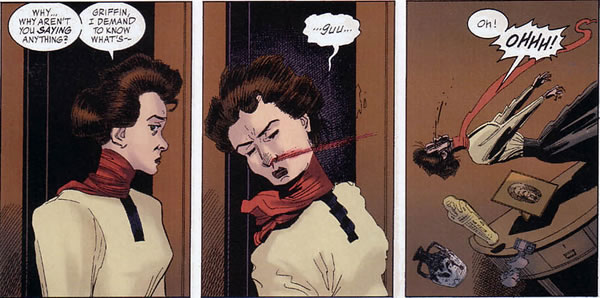 Before now, I considered the Invisible Man's assault on the constable, which happened in the first story, to be the most brutal scene in the series. Here's the one that comes in second: The Invisible Man's assault on Ms. Mina Murray. Just terrible.