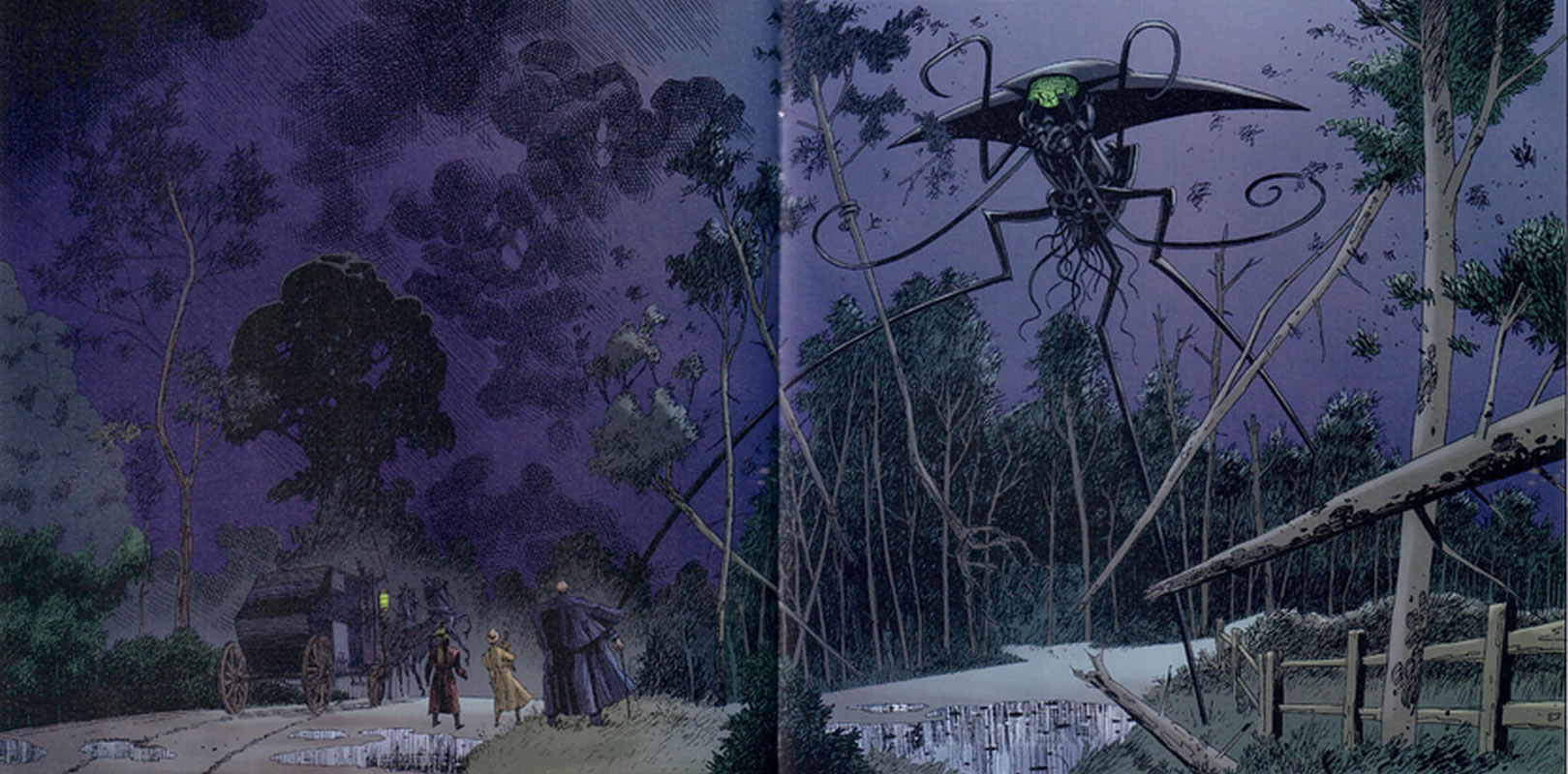 These 'tripods' are right out of the writing's of H.G. Wells. The Mulloscs are so powerful that with only two tripods they begin to overwhelm the Barsoomian and Hither armies. But then these guys arrive