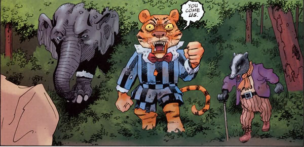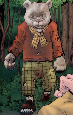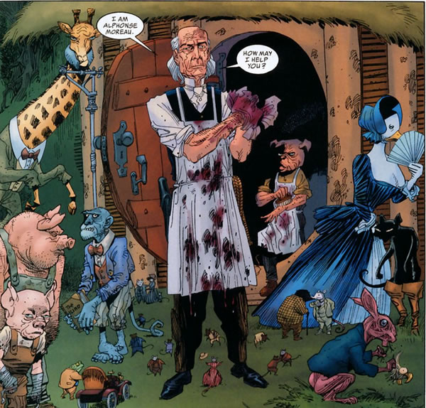 This creature and others like it are the creation of another famous literary character. H. G. Well's Dr. Moreau - the mad scientist who creates man-beasts. I don't like the way they're rendered because they look like giant teddy bears.