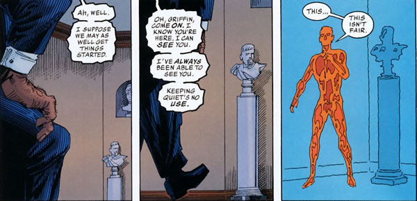 What follows next is bone-breaking, beatings and sodomy. Hyde makes it very clear that this is not because of Hawley's betrayal but because of the brutalization of Ms. Murray. In the end the Invisible Man is reduced to a suffering heap on the floor.