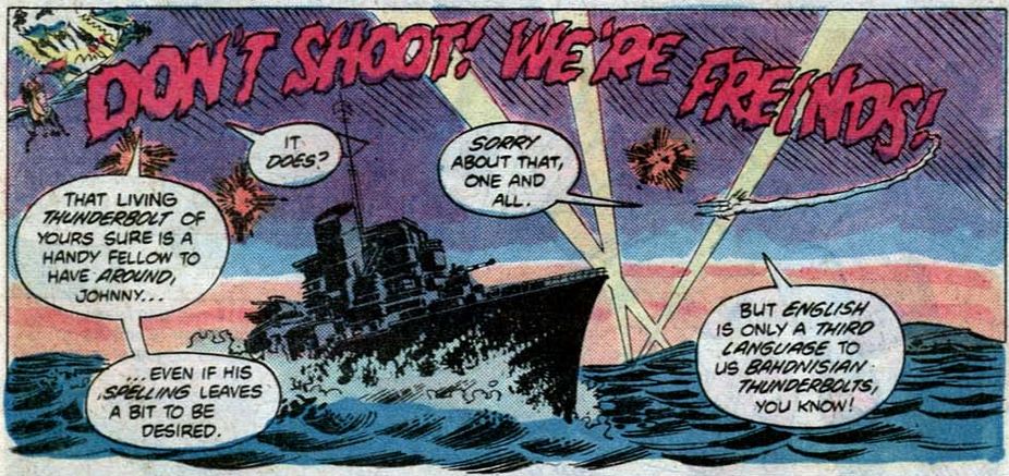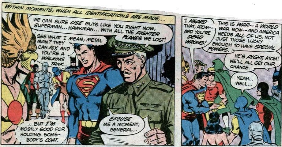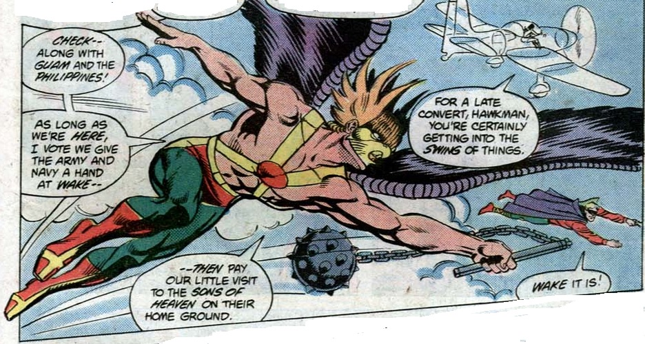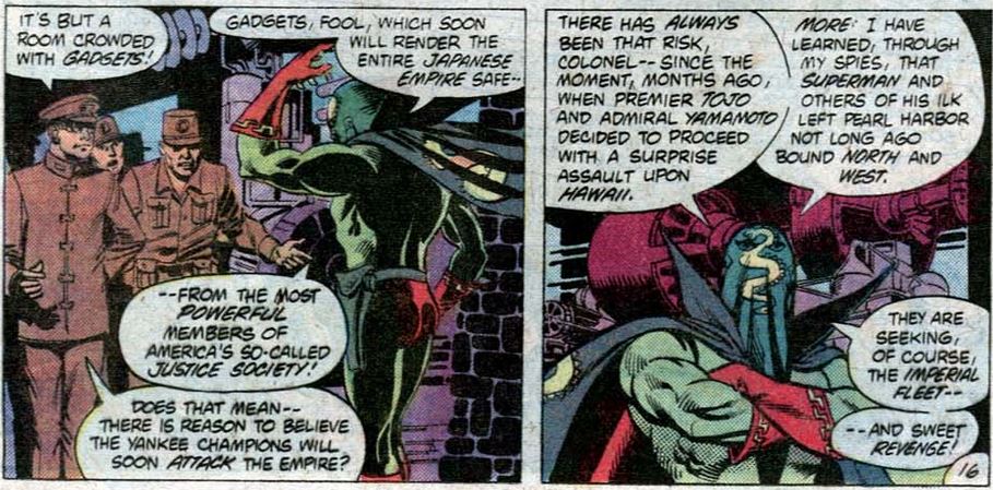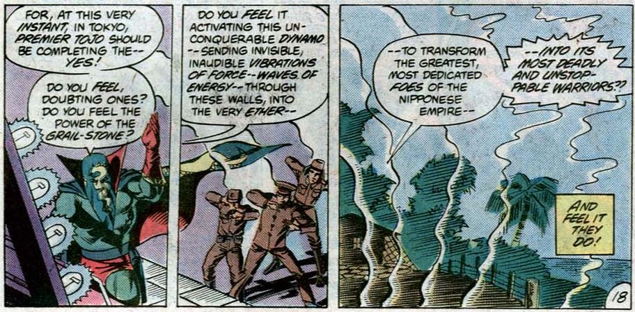 Another such zone exists in Europe around Germany and the Spear of Destiny. And this neatly explains why the JSA and All-Star Squadron can't simply go over to those places and win the war. The non-magical heroes can but without the heavy hitters victory is by no means assured.