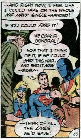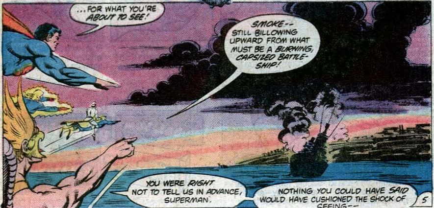 Surprisingly, Superman and the others cannot find the Japanese Fleet. They decide to head to Wake Island.