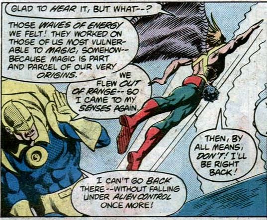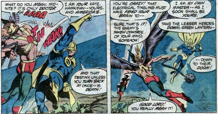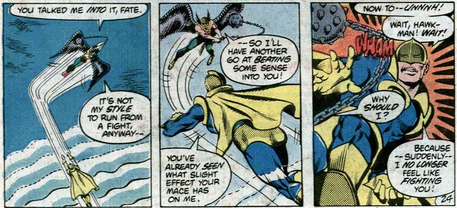 The skirmishing Hawkman and Dr. Fate find out that there is a limit to the influence of the artifacts.