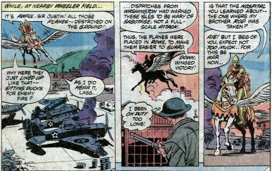 The All-Star Squadron come upon the aftermath of Pearl Harbor.