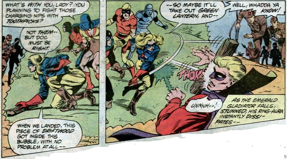 Green Lantern is another but Liberty Belle uses his weakness to wood to knock him out.