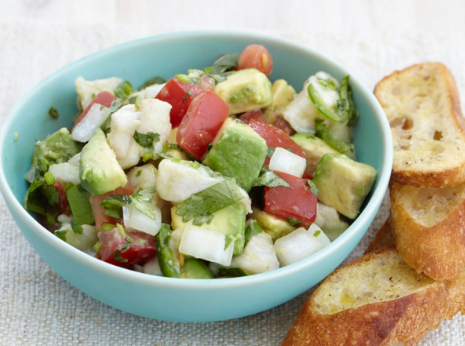 - Toss with 1/2 cup of lime juice. Cover and marinate in refrigerator 15 minutes.