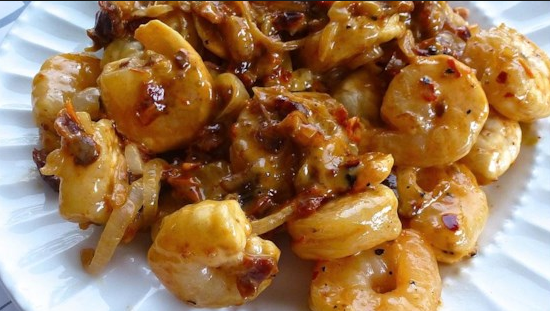 - Carefully add the Cognac(it may flame) and stir thoroughly. Spoon the warm beurre blanc sauce over the hot shrimp and serve.