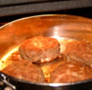 - Create four beef patties by mixing together the sirloin, thyme, salt, pepper, egg, and onions.