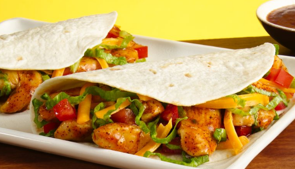 - Spoon about 1/2 cup off center on each tortilla; sprinkle with cheese.