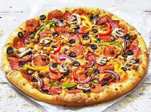 - Add the ham, salami, pepperoni, olives and pineapple.